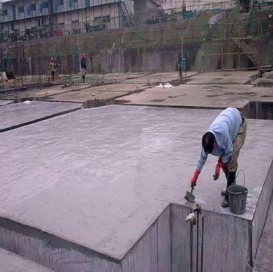 在聚合物水泥防水砂浆的施工上当施工的基面不平整时,要用水泥砂浆抹平,在潮湿基面(无水痕)上可以直接施工。将防水粘合剂加水调成糊状后,用泥板粉涂在墙面上,需要分为三次进行,每次间隔时间约5小时左右,在总厚度一定不要小于4—5mm。在夏天施工时要注意在干燥墙面施工前应浇水湿润,等到水渍干固后才可做其他覆盖层。施工完以后的养护时间应不小于14小时。