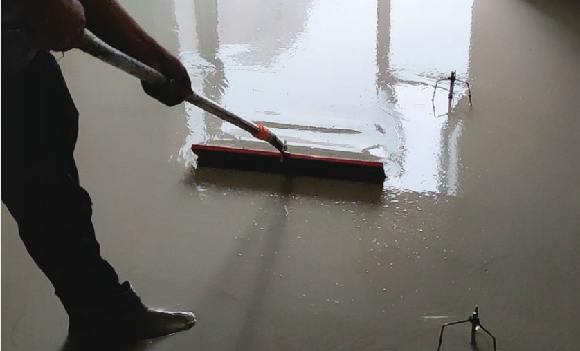 2、然后均匀涂抹界面剂,界面剂能够让自流平和基面较好的粘结在一起;