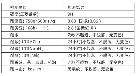 2、高耐化学品性。经测试,其漆膜可耐10%盐酸、10%硫酸、10%氢氧化钠、50%乙醇,浸泡24小时漆膜无任何变化。